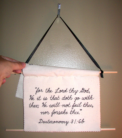 The lower photograph on this page is a replica of a Civil War-era “Silent Comforter” which had calendar-like sheets with biblical quotations. It would be used to comfort soldiers recuperating from illness or in the process of dying.